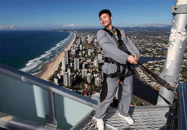 Gold Coast: World No. 5 men’s singles player Shi Yuqi of China was taking a break from the 2017 Sudirman Cup training to enjoy the most exhilarating adventure experience on the Gold Coast – SkyPoint.