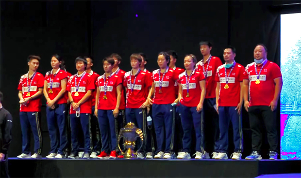 After Shi Yuqi gave China a 2-1 lead, Chen Qing Chen/Jia Yi Fan took that searing momentum into the women’s doubles match and Mayu Matsumoto/Misaki Matsutomo were not used to the strong attacks from the Chinese pair. Jia Yi Fan sealed the championship point with a return to Mayu Matsumoto, but Matsumoto hit the shuttlecock too strong towards the right side of Chen Qing Chen and it landed out of bound.