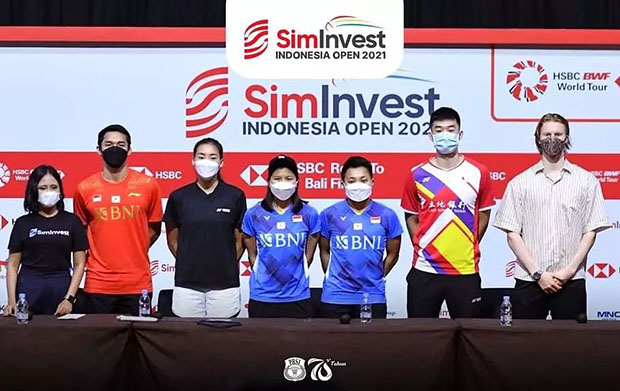 Anders Antonsen (R) attends the 2021 Indonesia Open press conference on Monday. (photo: PBSI)