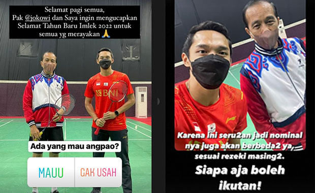 On Tuesday, Indonesia’s World No. 8 Jonatan Christie uniquely celebrated the Chinese New Year. He posted a picture of him and the President of Indonesia – Joko Widodo on his social media page with the following message: