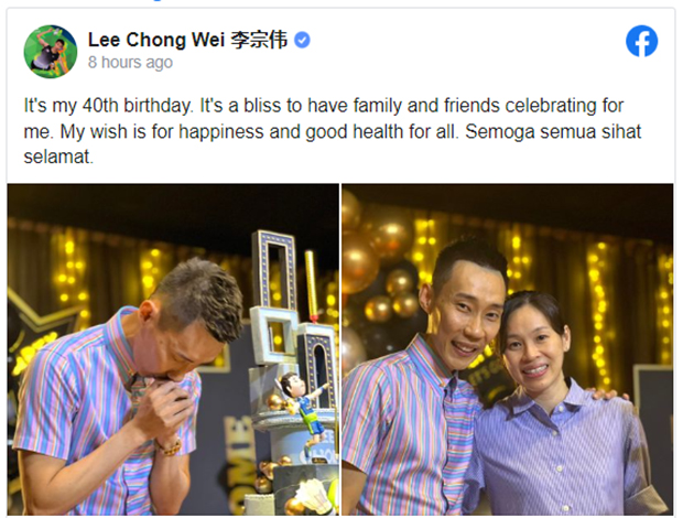 Happy 40th birthday to Lee Chong Wei. (photo: Lee Chong Wei's Facebook)