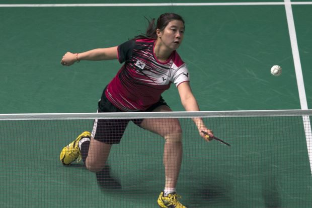 Bae Yeon-ju in action against 16-year-old Akane Yamaguchi of Japan in the Maybank Malaysian Open quarter-finals. Yeon-ju won 21-15, 21-16.