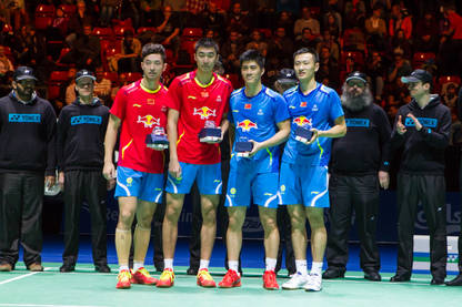 Chai Biao and Hong Wei beat Fu HaiFeng and Zhang Nan in two sets and win the men's doubles final with 22:20 and 21:14.
