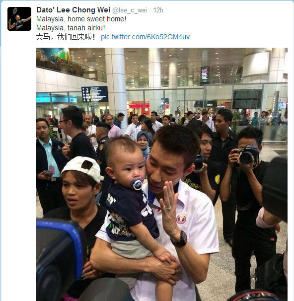 World number one, Lee Chong Wei was especially pleased to see his wife Wong Mew Choo and their son Kingston. Chong Wei said he was happy in general with the team performance in Thomas Cup Final.