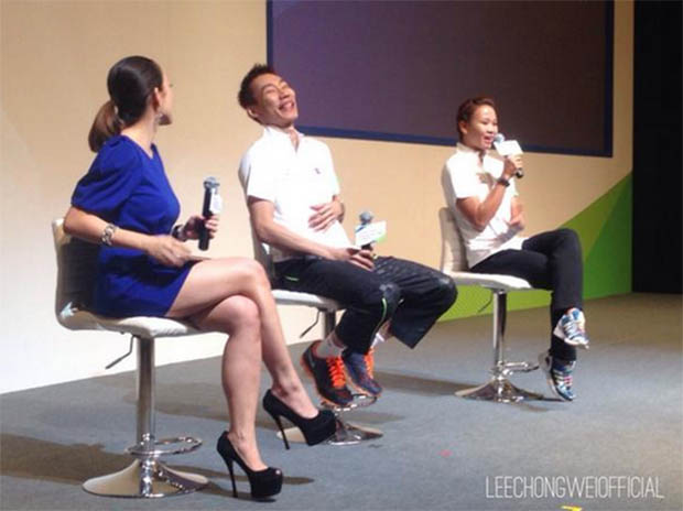 Lee Chong Wei and Pandelela Rinong (right) during the Samsung Asian Games media conference.