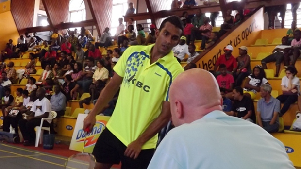 The South African who is ranked 90th in the world took the first game 21-8 before the Ugandan fought back to win the second 21-18.