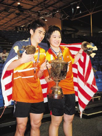 Both players had been disappointed to lose in the boys and girls doubles semi-finals on Saturday and were determined that Malaysia would return with at least one title.