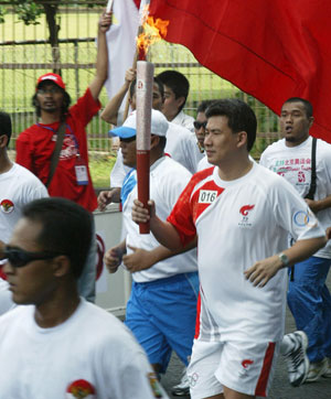 It was the first time the Olympic torch passed through Jakarta, the largest southeastern Asian city.
